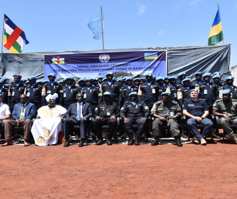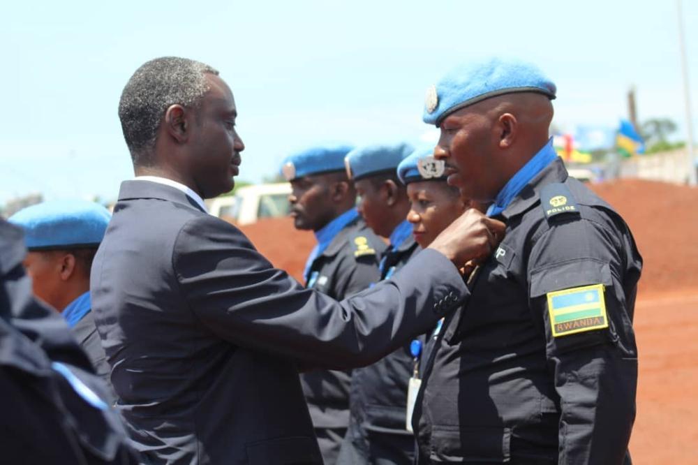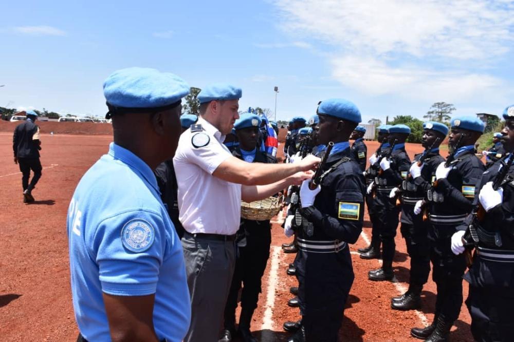 Africa-Press – Rwanda. Some 180 Rwandan Police peacekeepers serving under the UN Multidimensional Integrated Stabilization Mission in Central African Republic (MINUSCA) were on Wednesday, October 11, awarded the UN service medals in recognition of their sacrifice to protect civilians.
