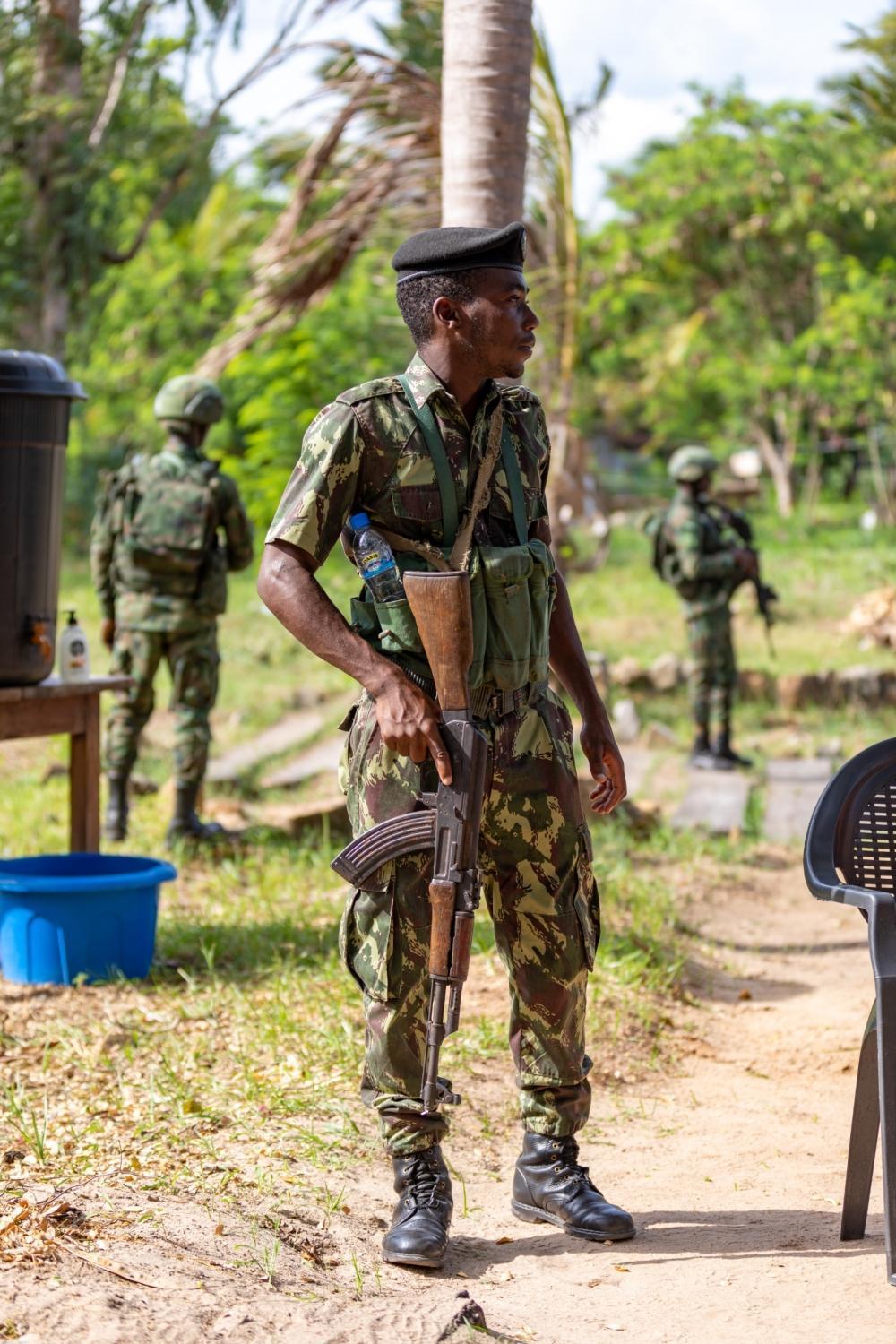 A Mozambican soldier with Rwanda Security Force in Cabo Delgado. Photo by Christianne Murengerantwari.