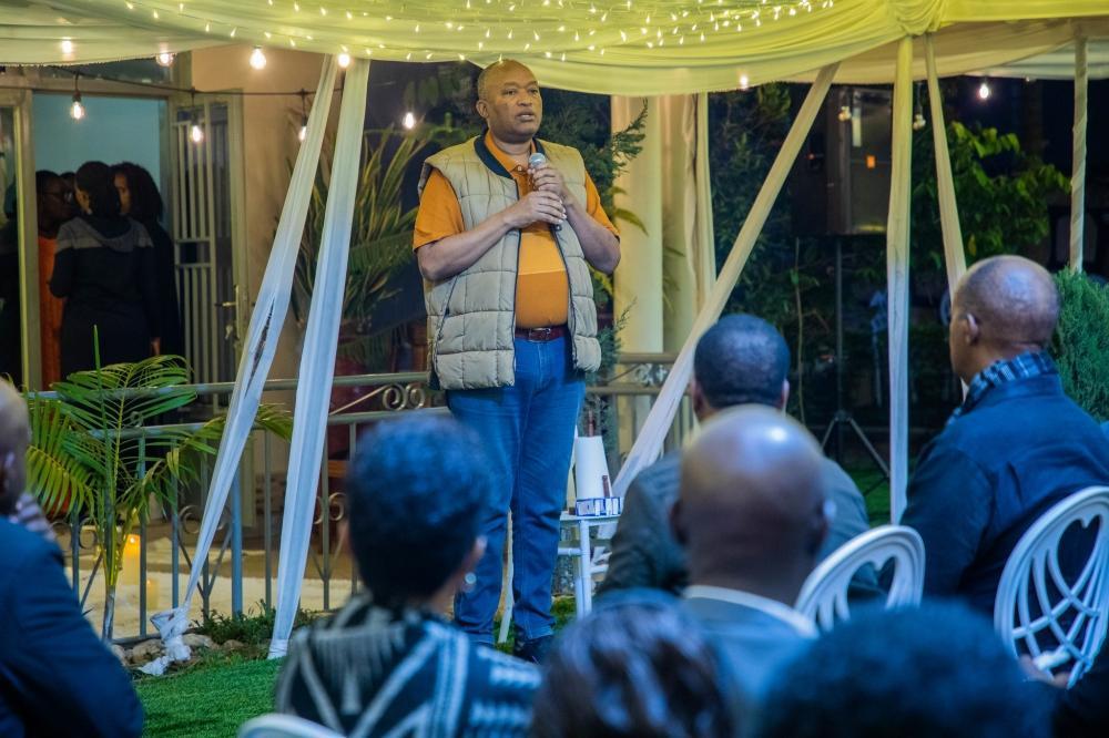 Researcher Tom Ndahiro speaks during the night of vigil on Tuesday.