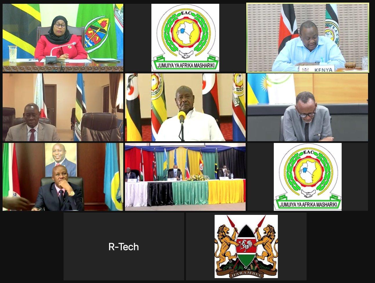 Kenyan President Uhuru Kenyatta—who is also the Chairperson of the Summit, Rwanda’s Paul Kagame, Tanzania’s Samia Suluhu Hassan and Uganda’s Yoweri Museveni, met virtually during the bloc’s 18th extraordinary Summit. Burundi’s Vice President Prosper Bazombanza and South Sudan’s EAC Minister, Deng Alor Kuol, represented their respective countries.