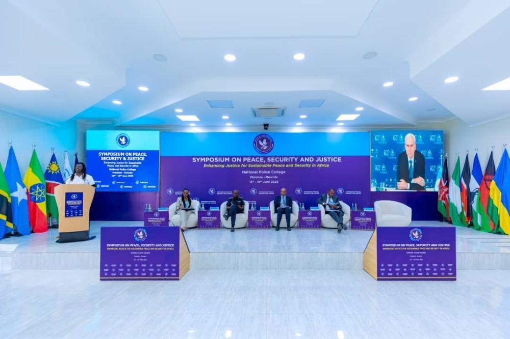 Prof. Fredrick Ogenga, director of the Centre for Media, Democracy, Peace and Security (CMDPS) Kenya, IGP Felix Namuhoranye, Justice Minister Emmanuel Ugirashebuja, AIG Francis Rwego, Special Representative of Interpol to the African Union, and Jurgen Stock, the Interpol Secretary General, who joined virtually. They discussed on social and criminal justice–concerns and prospects.