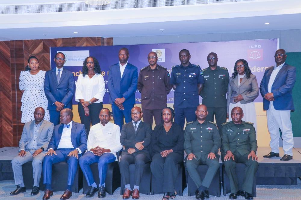 Offcials pose for a photo as ILPD unveil Rwanda’s first-ever national research on the Mapping and Profiling of Alternative Dispute Resolution (ADR) Service Providers. Courtesy
