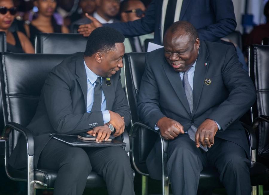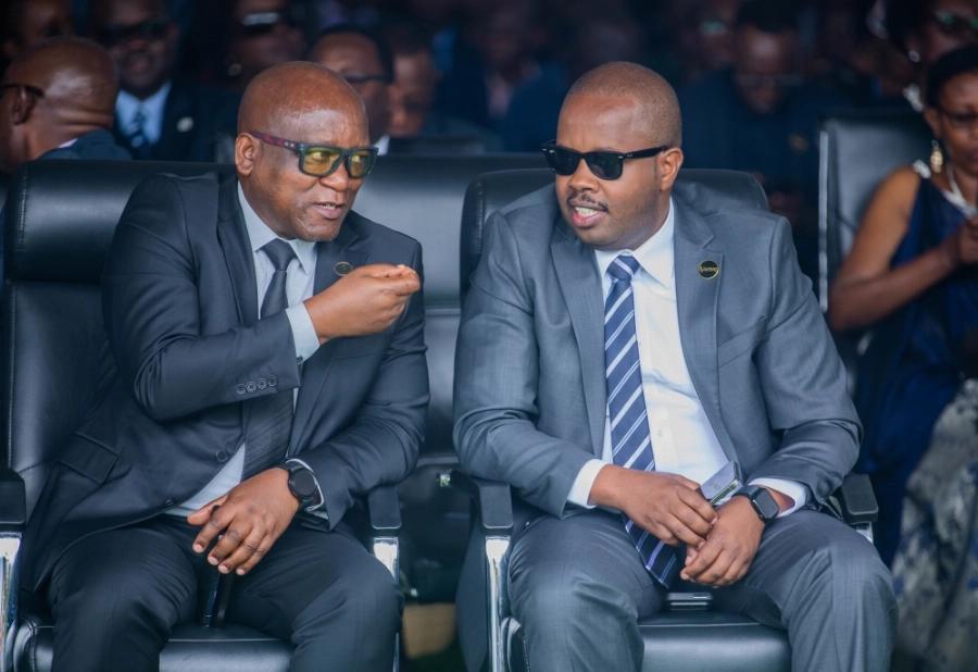 Prime Minister Justin Nsengiyumva interacts with Foreign Affairs Minister Olivier Nduhungirehe at the closing ceremony of the commemoration week.