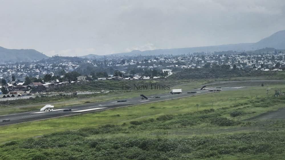 A view of Goma airport runway, which was significantly damaged during the battle that saw the AFC/M23 capture the airport earlier this year