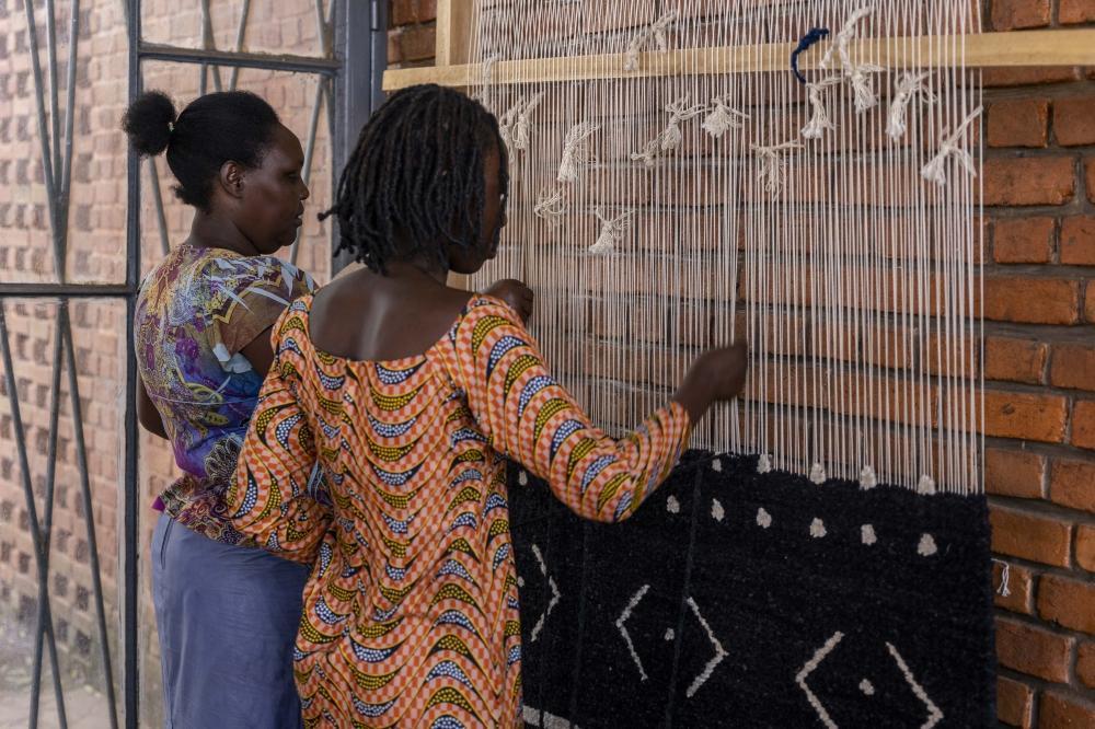 Women design a carpet at Urugo Women’s Opportunity Center in Kayonza