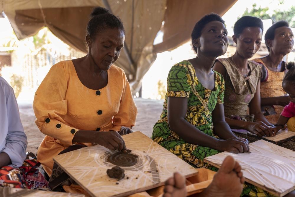 Women design imigongo, a Rwandan centuries old decoration designed with cowdung