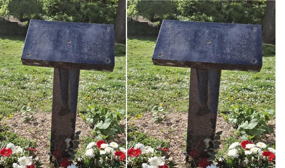 The desecrated commemorative plaque was inaugurated in April 2024.