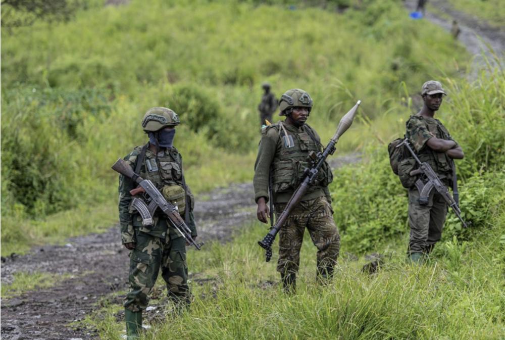M23 rebels at the formalisation of their withdrawal from the town of Kibumba, eastern DRC, December 23, 2022. AP/Sipa
