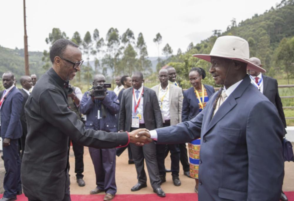 © Rwandan President Paul Kagame and his Ugandan counterpart Yoweri Museveni, in Kigali, February 21, 2020. Xinhua
