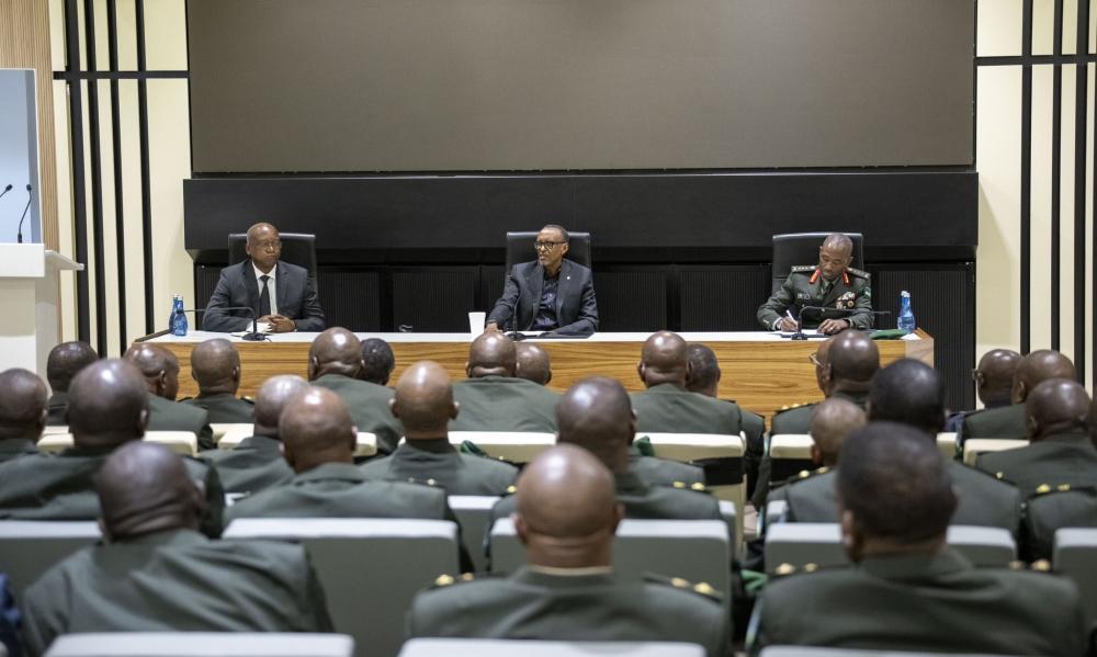 Africa-Press – Rwanda. President Paul Kagame, in his capacity as the Commander-in-Chief of the Rwanda Defence Force (RDF) on Friday, September 1, met with recently retired Generals and senior officers, during which he thanked them for their service.