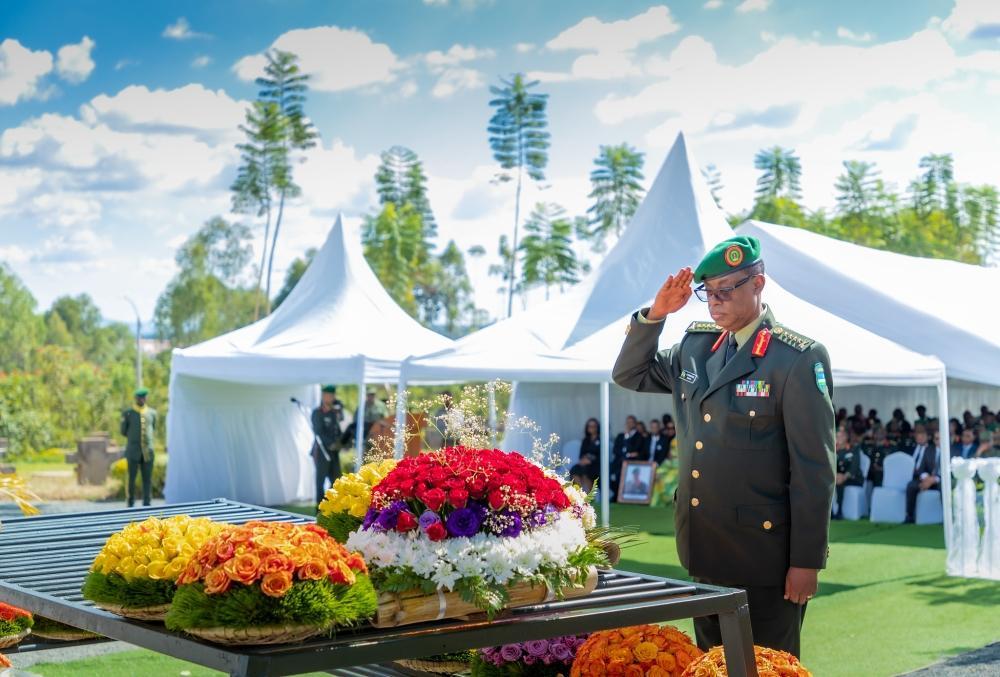 Gatsinzi, who retired from the military in 2013, was laid to rest at the Kanombe Military Cemetery in the capital Kigali on Thursday, March 16. The ceremony was attended by his family, senior military and government officials, including Defence minister Maj Gen Albert Murasira, Senior Defence and Security Advisor to the President, Gen James Kabarebe, and Rwanda Defence Force (RDF) Chief of Defence Staff, Gen Jean-Bosco Kazura.