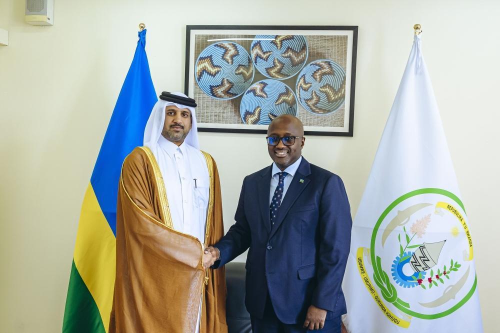 Africa-Press – Rwanda. Qatar’s newly appointed ambassador to Rwanda, Mansour bin Ali Fahad Al-Shahwani Al-Hajri, on Monday, December 15, presented copies of his letters of credence to the Minister of Foreign Affairs and International Cooperation, Olivier Nduhungirehe.