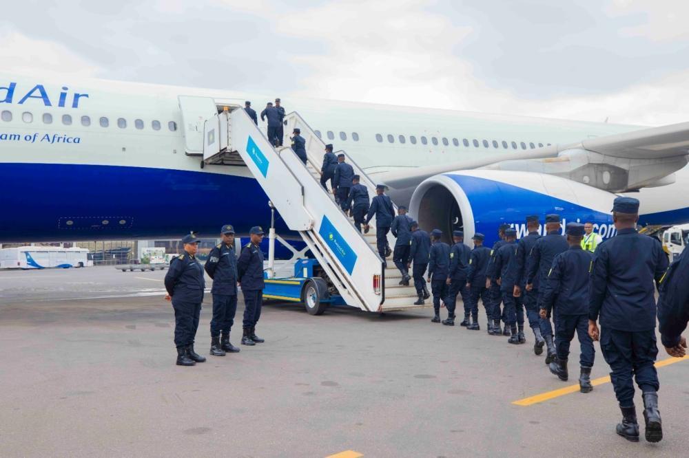 Commissioner of Police (CP) William Kayitare oversaw the rotation of the contingents on behalf of RNP leadership, at Kigali International Airport.