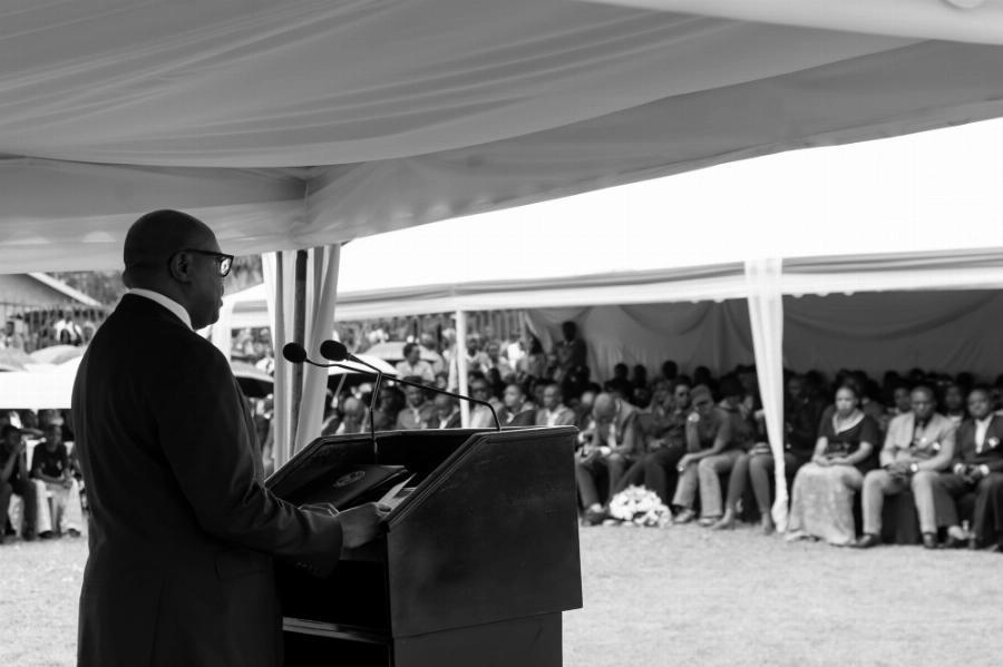 Prime Minister Justin Nsengiyumva addresses mourners during the commemoration of the Genocide against the Tutsi in Ngororero District on Friday, April 10. Photos by Craish Bahizi