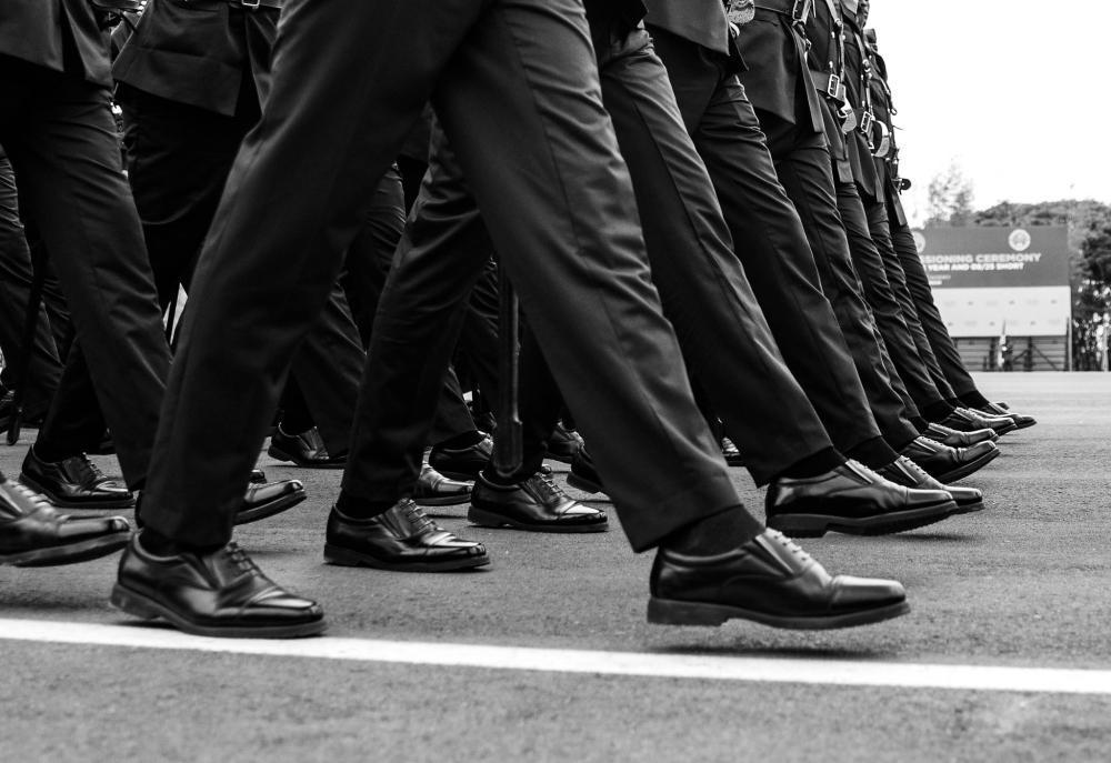The new officers mounted a military parade, while they also engaged in morale-boosting sessions