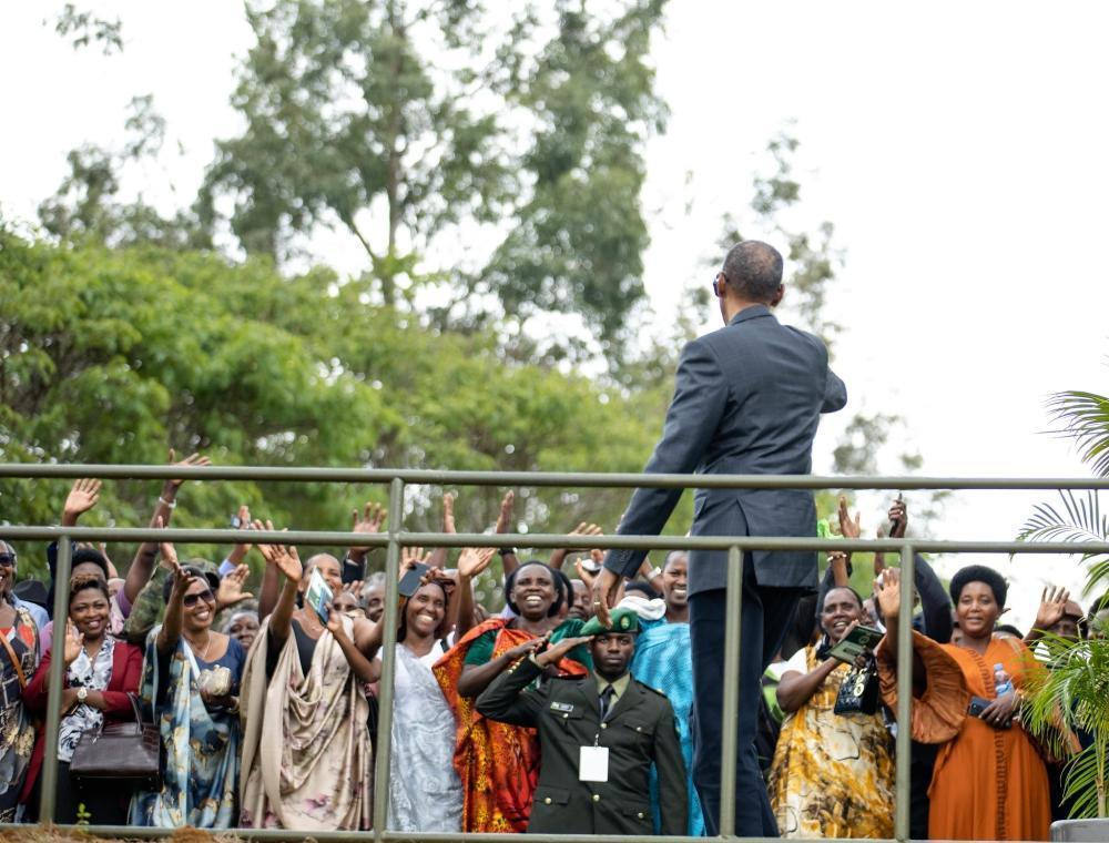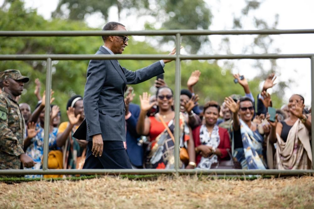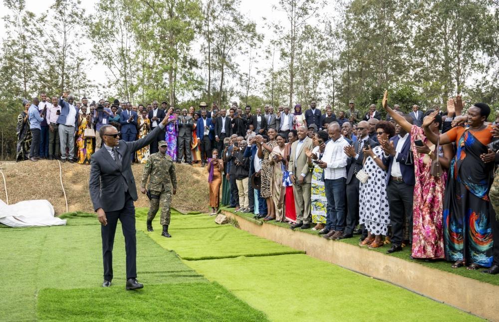 Attendees greet President Paul Kagame at the end of the ceremony in Bugesera.