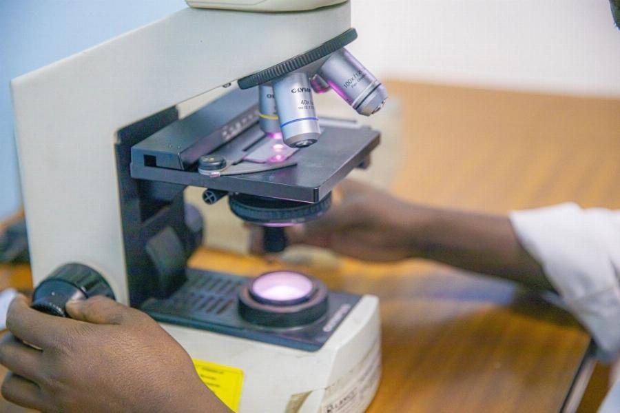 Microscope analysis at Cerba Lancet Rwanda for accurate diagnostics.