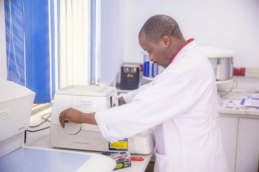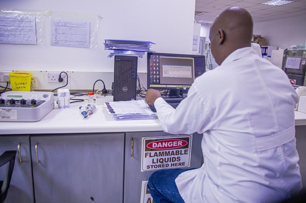 A microbiologist on duty at Cerba Lancet Rwanda.
