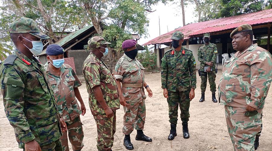 In Mocimboa da Praia, the visiting delegation was received by the Joint Task Force Commander (JTFC) Maj Gen Innocent Kabandana, accompanied by other senior RSF officers.