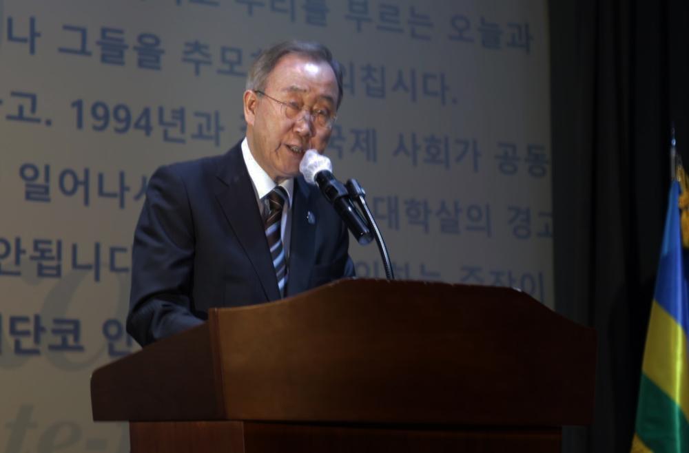Ban Ki-moon, the former Secretary-General of the UN delivers remarks during the commemeration of the Genocide against the Tutsi in South Korea on April 7.
