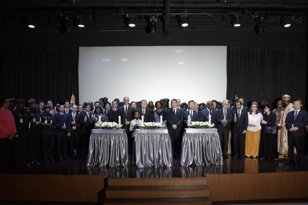 Mourners observe a moment of silence as Rwandans and top government officals in South Korea commemorate the 1994 Genocide against the Tutsi , on Friday, April 7. Courtesy