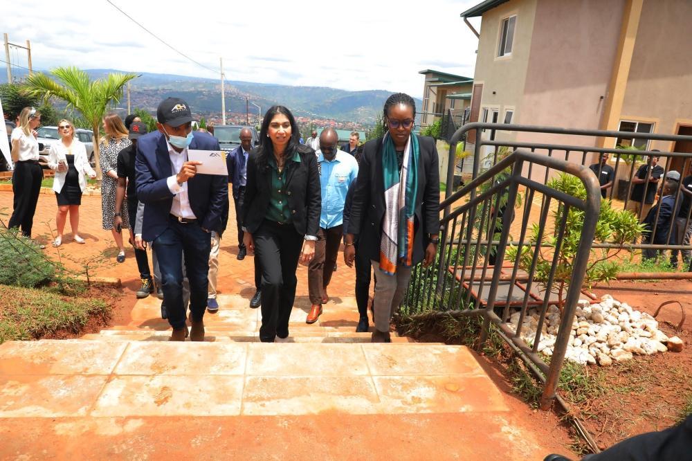 UK Home Secretary, Suella Braverman during a guided tour of Bwiza Riverside estates in Nyarugenge District. She told the media that the estates will be used for the resettlement and integration of migrants coming from the UK.