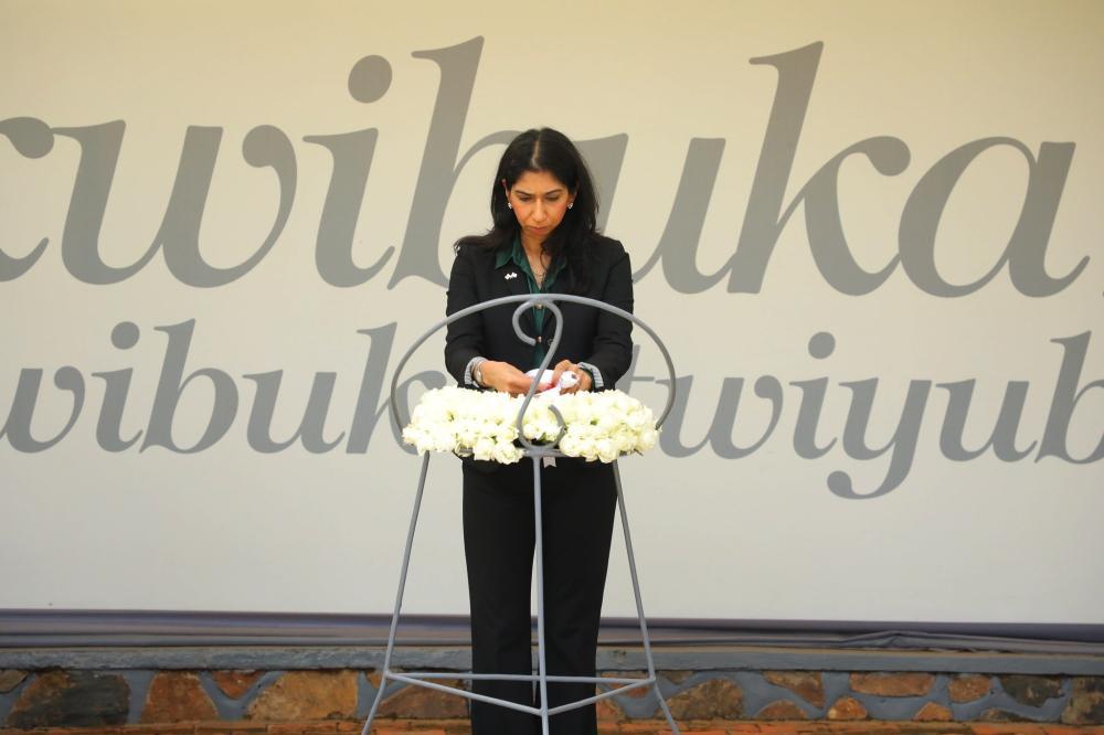 The United Kingdom’s Home Secretary, Suella Braverman lays a wreath to pay tribute to the victims of the Genocide against the Tutsi as she visits Kigali Genocide Memorial.
