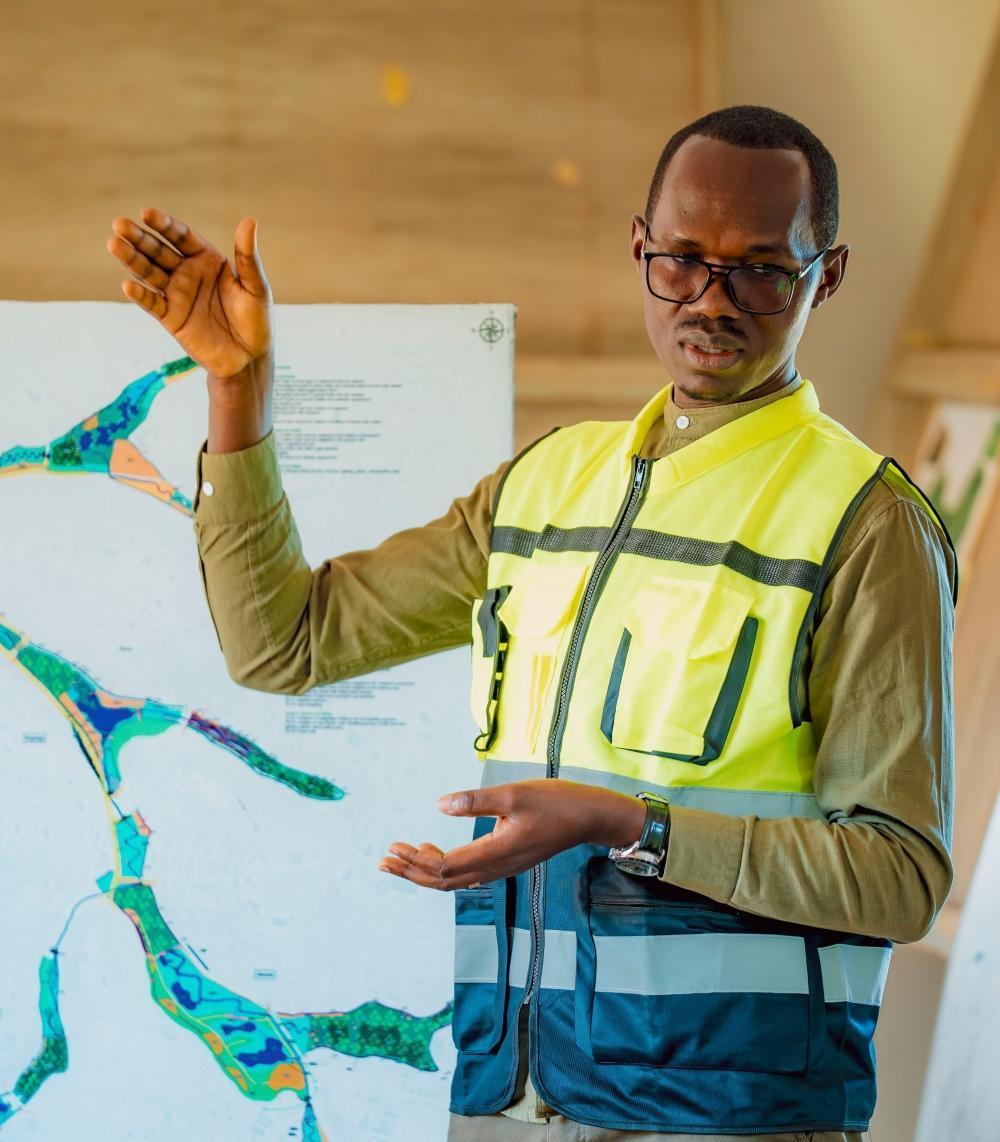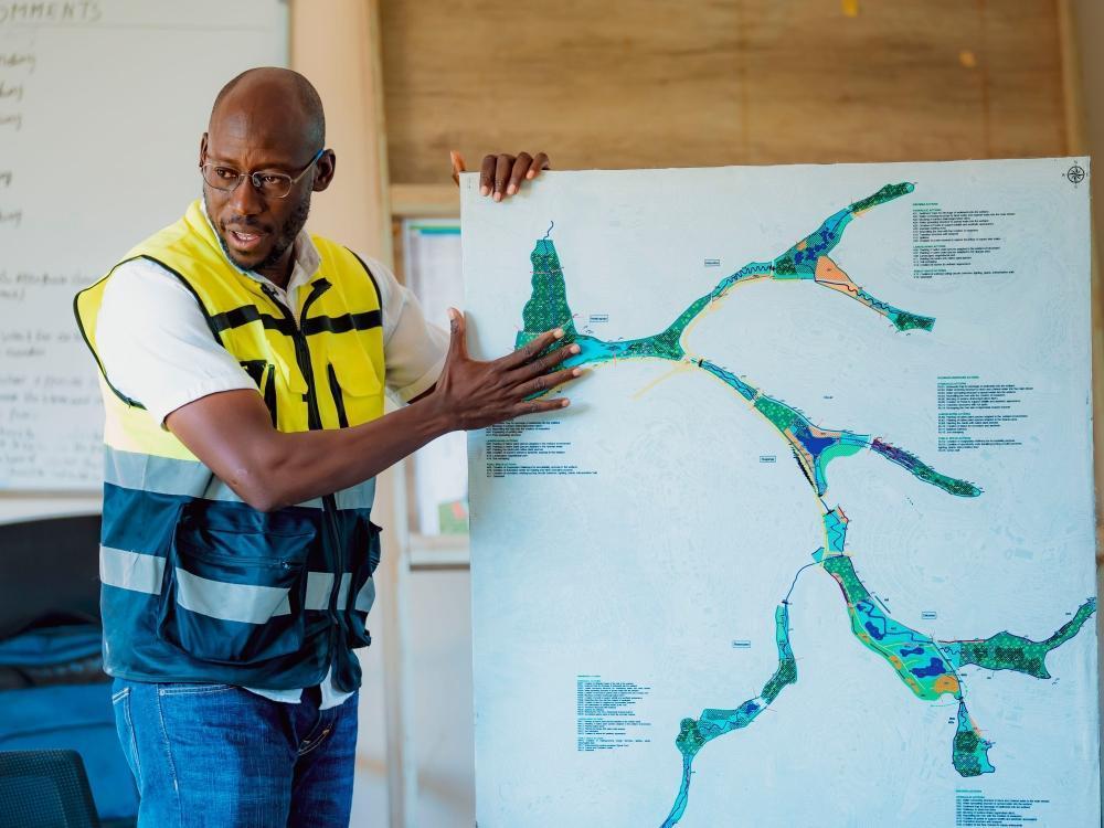 Fred Bugingo, Managing Director of Real Constructor, explains the project during a tour of the Kigali Wetlands Restoration Project on November 25. Courtesy