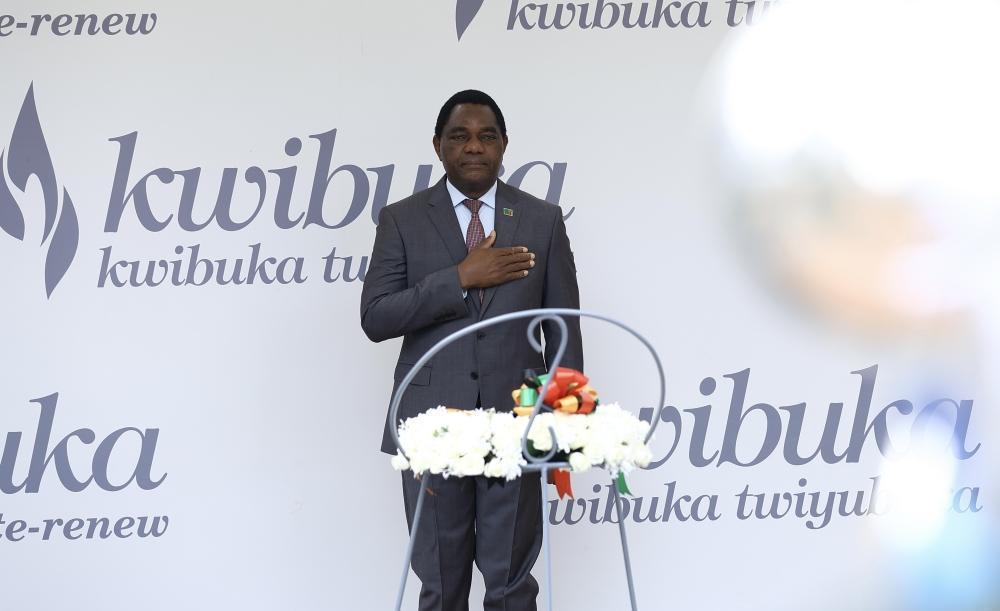 Africa-Press – Rwanda. Zambian President Hakainde Hichilema visited the Kigali Genocide Memorial early on Wednesday, June 21, to pay tribute to victims and survivors of the 1994 Genocide against the Tutsi.