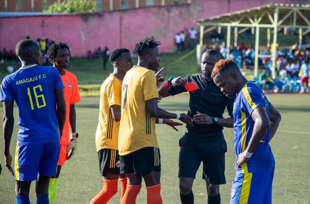 The home team was playing with a man down after goalkeeper Emmanuel Twagira was shown a straight red card in the 56 minute for hitting Amagaju’s Shyaka Peirre Celestin on the head.