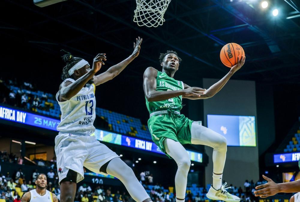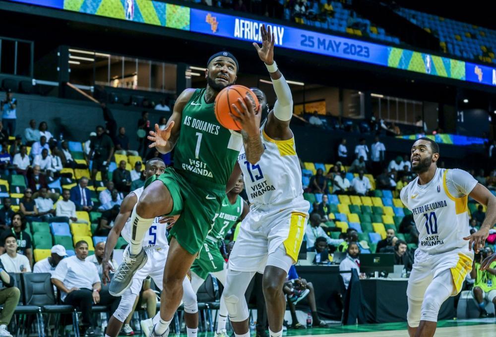 AS Douanes’player with the ball tries a stylish finish as they upset Angola’s Petro de Luanda 92-86 in the semi-finals on Wednesday at BK Arena. All Photos by Olivier Mugwiza