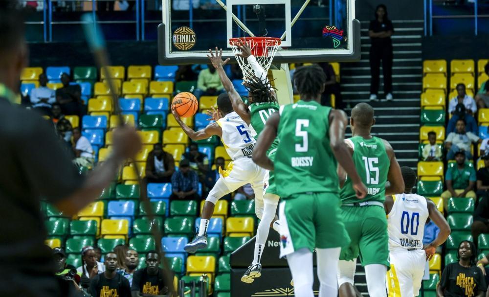 An AS Douanes player shoots a layup as they upset Angola’s Petro de Luanda 92-86 in the semi-finals on Wednesday at BK Arena.Photo: Olivier Mugwiza.