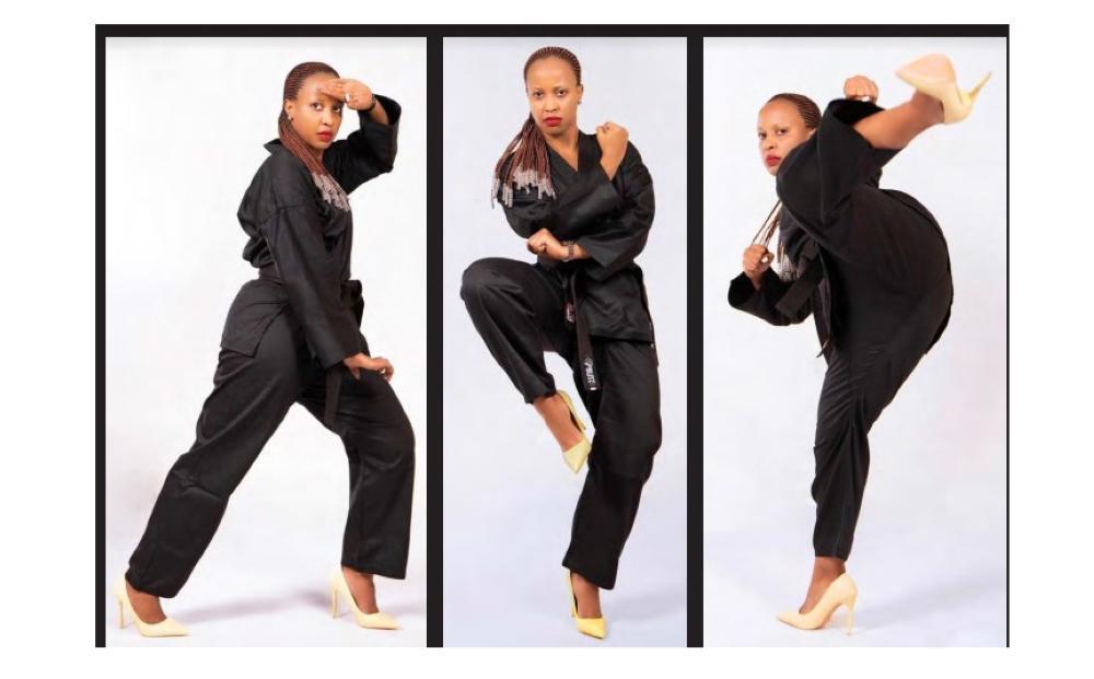 Delphine Ortha Uwase, a businesswoman with various talents in martial arts and acting, showcasing her skills.