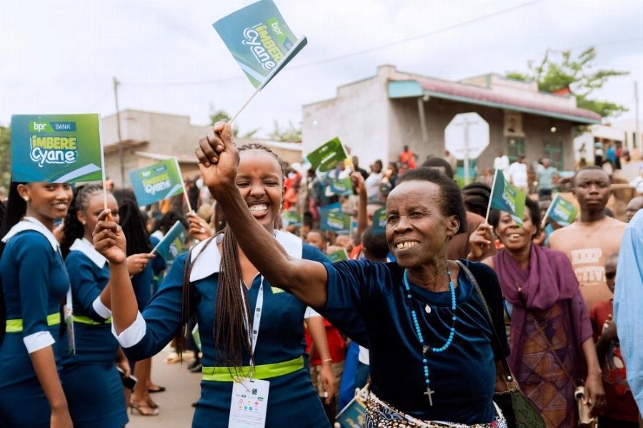Residents enjoying to watch the race with BPR Bank Rwanda staff in Rwamagana.