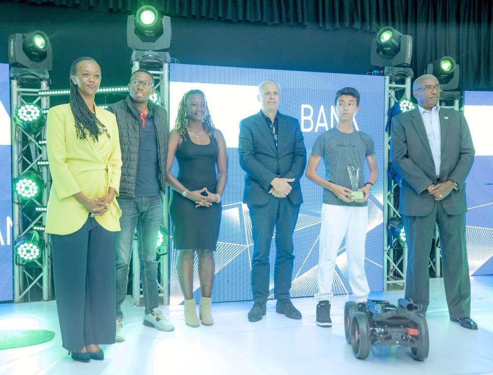 L-R: Patience Mutesi, the Managing Director of BPR Bank Rwanda, Benjamin Mukisa, Stella Matutina Irumva, Gary Show, Ewan Widor and George Rubagumya, the Chairman of BPR Bank Rwanda’s board of directors pose for a picture at the awarding ceremony on Saturday, October 21. Courtesy