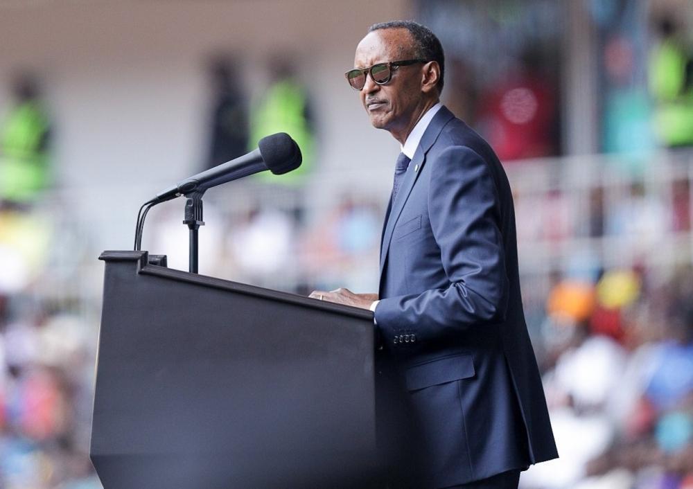 President Paul Kagame addresses thousands of Rwandans and friends of Rwanda during the celebration of 30 years of Liberation at Amahoro Stadium on Thursday, July 4. Photo by Dan Gatsinzi