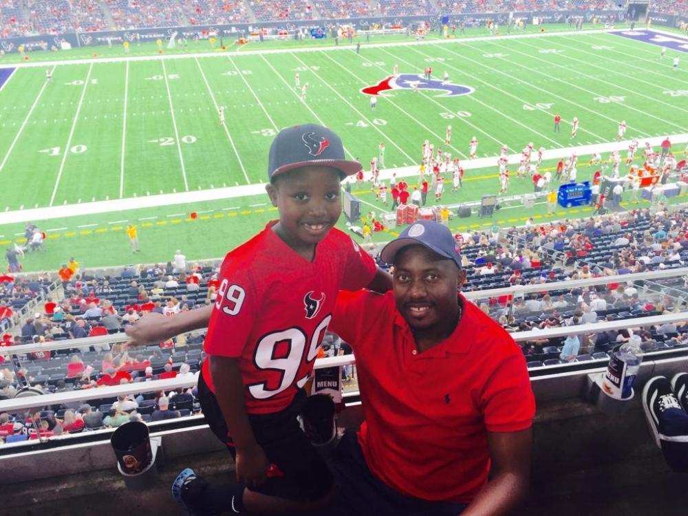 A younger Kenrik attending a football match in Houston alongside his father Mike. Kenrik hails from a sports loving family.