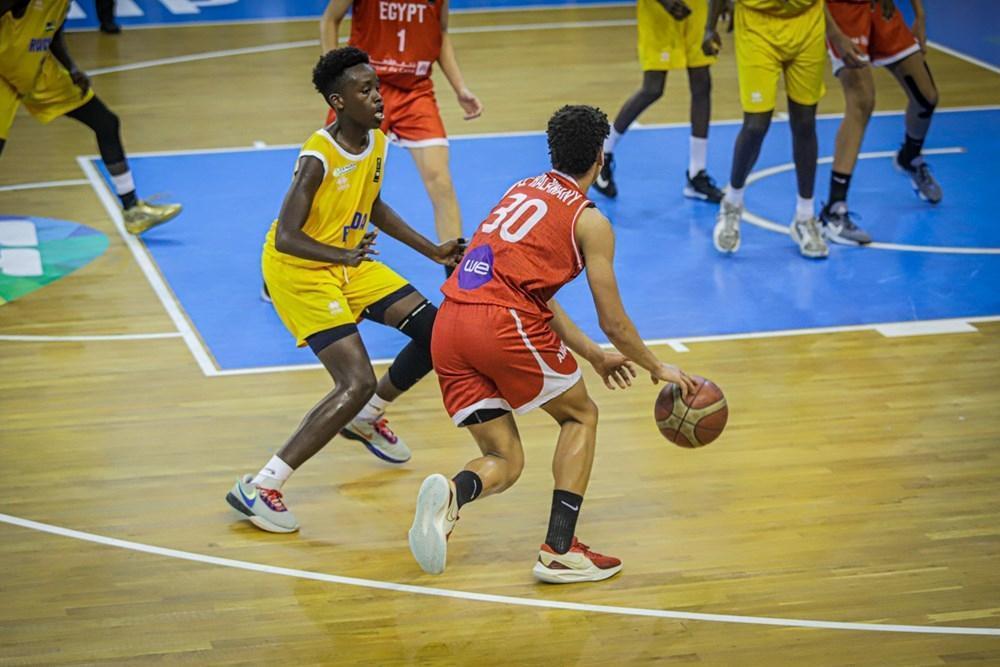 Kabano closes down an Egyptian player during the quarterfinals of the U16 Afrobasket in Tunisia. He was the top scorer in the game with 21 points