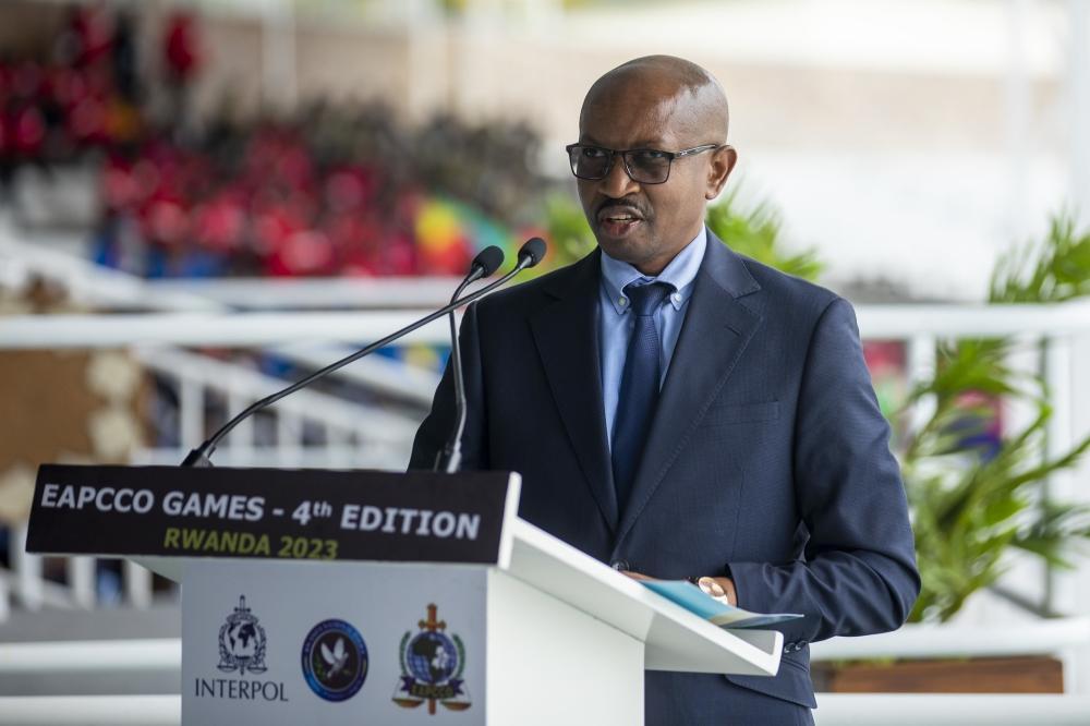 Minister of Interior Alfred Gasana delivers remarks during the official opening of the fourth edition of EAPCCO games at Kigali Pele Stadium on Tuesday, March 21.