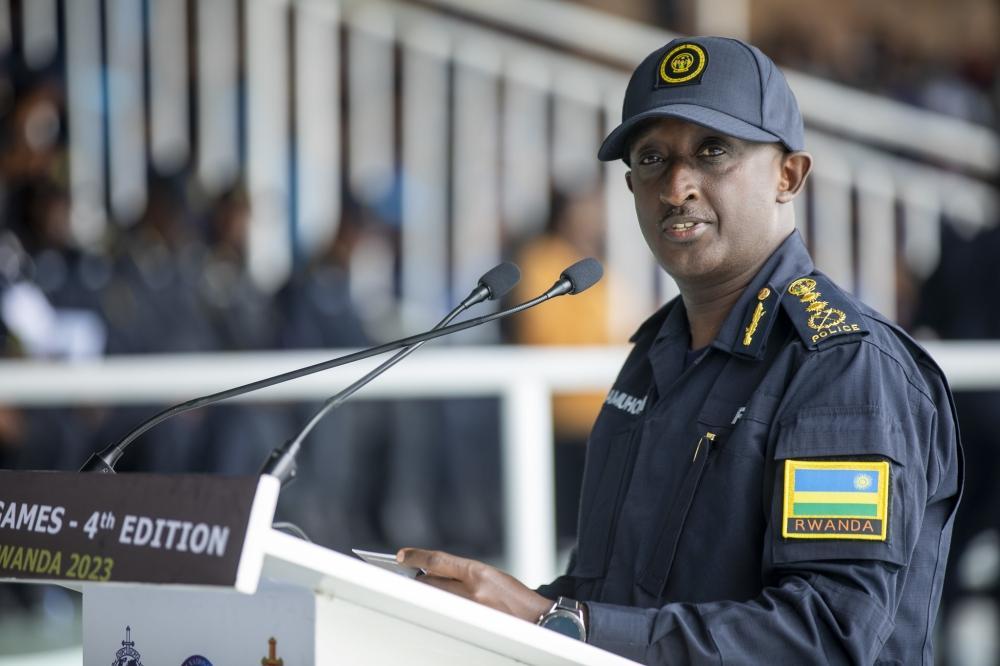 Rwanda National Police Inspector General of Police Felix Namuhoranye addresses the participants during opening of the fourth edition of EAPCCO games at Kigali Pele Stadium on Tuesday, March 21. All photos by Ol