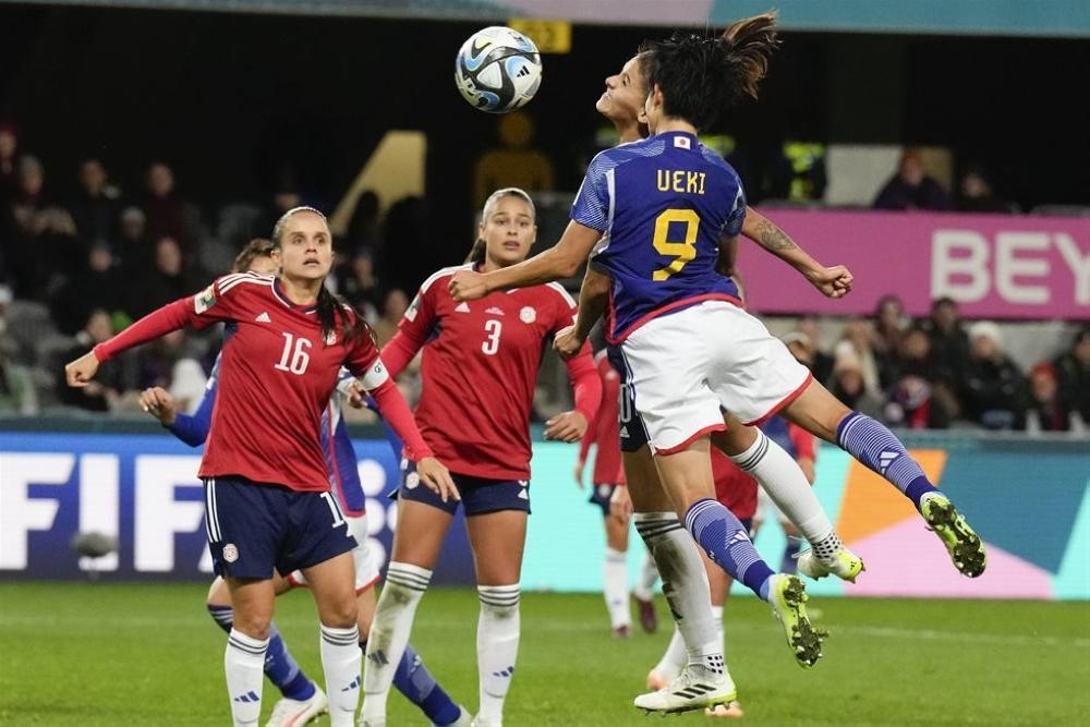 Japan’s Riko Ueki attempts to head the ball at goal during the Women’s World Cup Group C football match between Japan and Costa Rica in Dunedin, New Zealand, July 26. AP-Yonhap