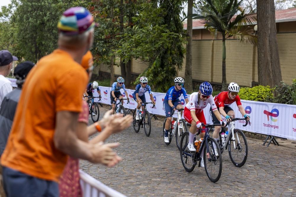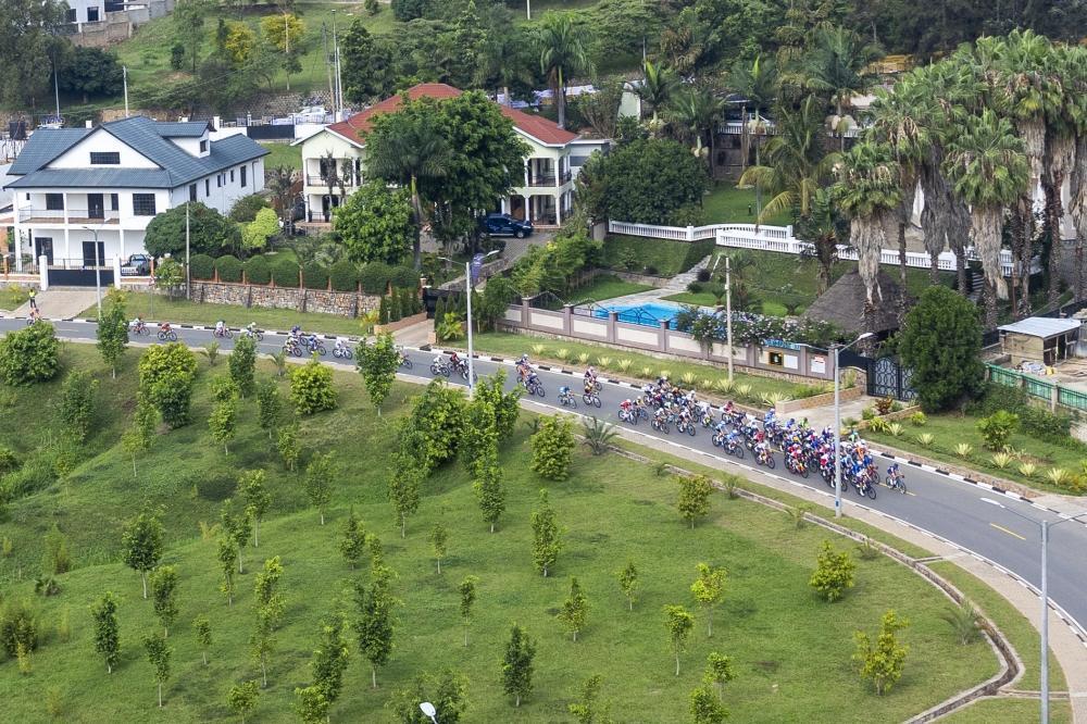Riders climb the Cote se Kimihurura, the most challenging section of the route.