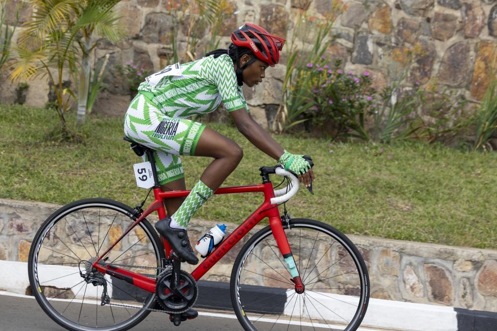 Team Rwanda’s Xaverine Nirere in action. She withdrew before finishing the rce.