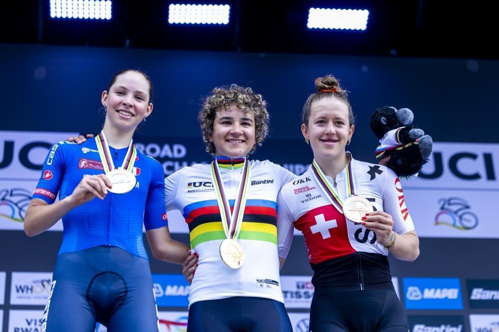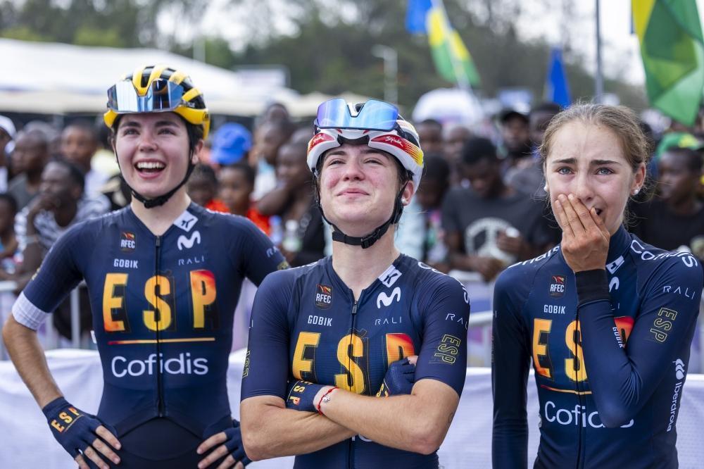 Emotions ran high and tears of joy flowed on cyclists’ cheeks as their teammate Paula Ostiz claimed gold in the junior women’s race on Saturday , September 27. All photos by Olivier Mugwiza