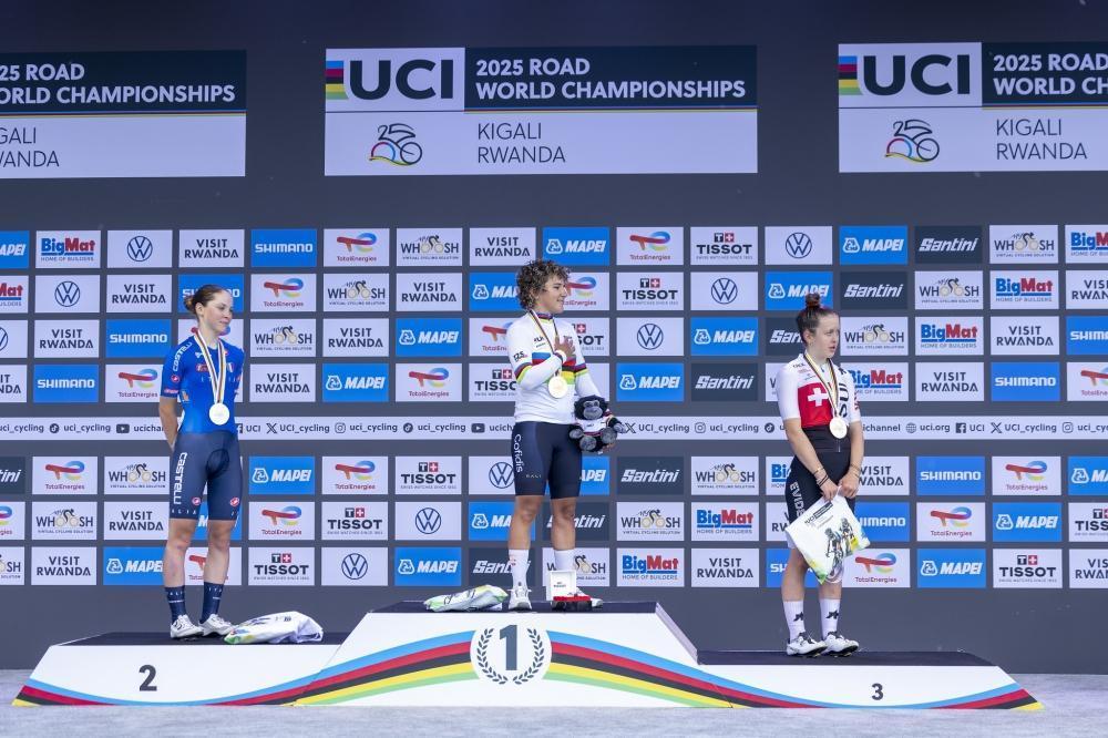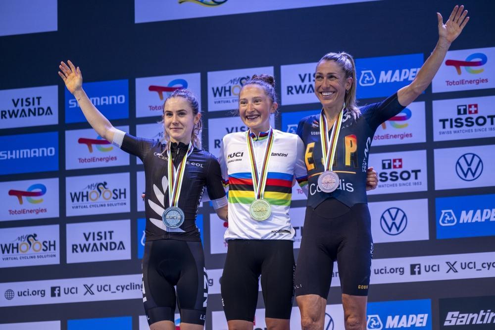 The highly anticipated afternoon race for the elite women ended with Canada’s Magdeleine Vallières crowned champion of the Women’s Elite Road Race. New Zealand’s Niamh Fisher-Black secured silver, while Spain’s Mavi García made history by taking the bronze.