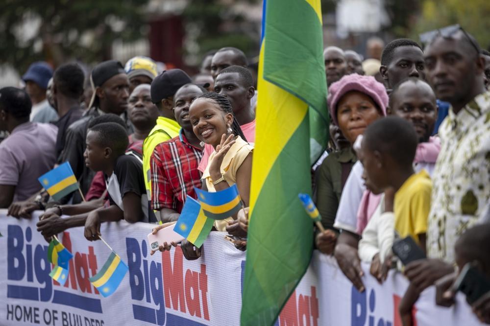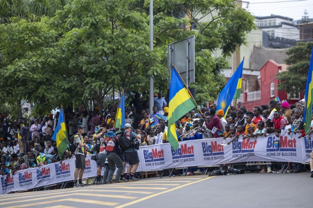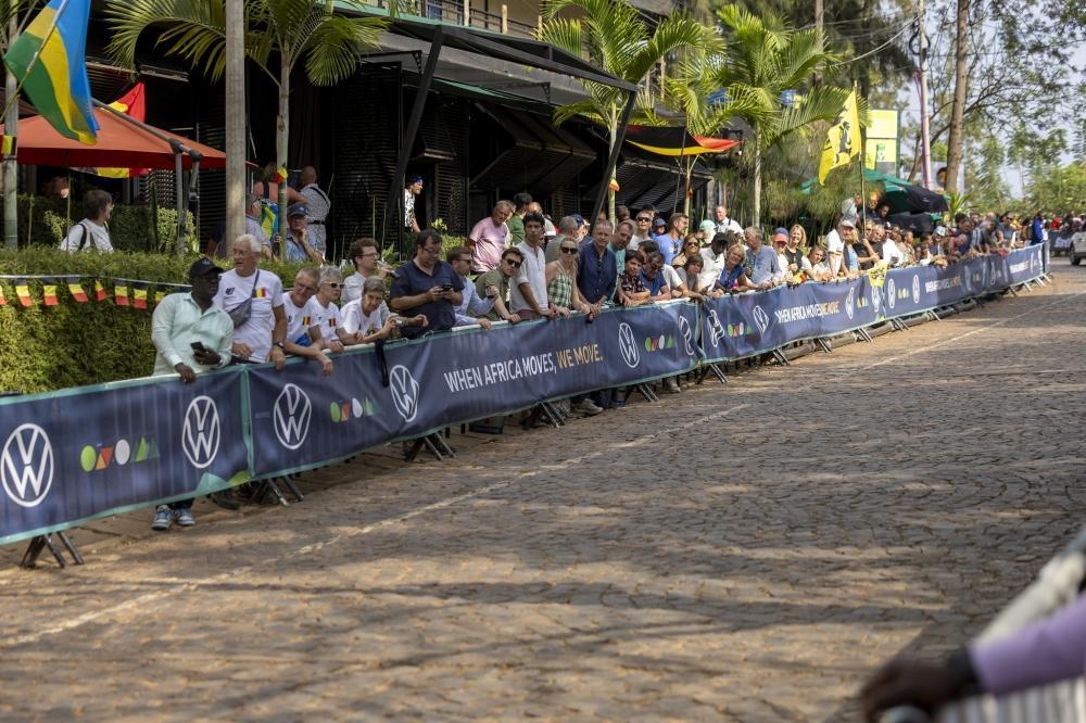 Some Kigali residents watch the race at Kacyiru