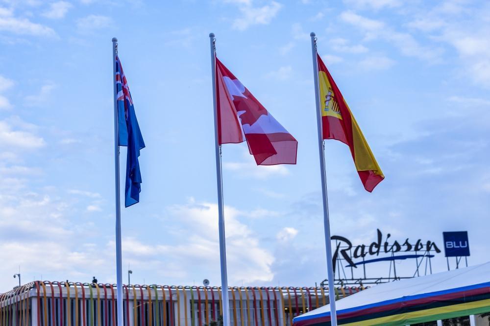 Flags of the winners’ countries hoisted to honour their victories.