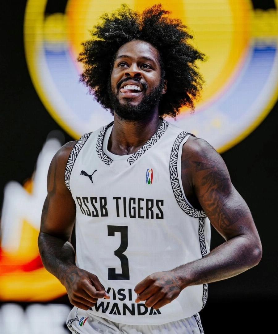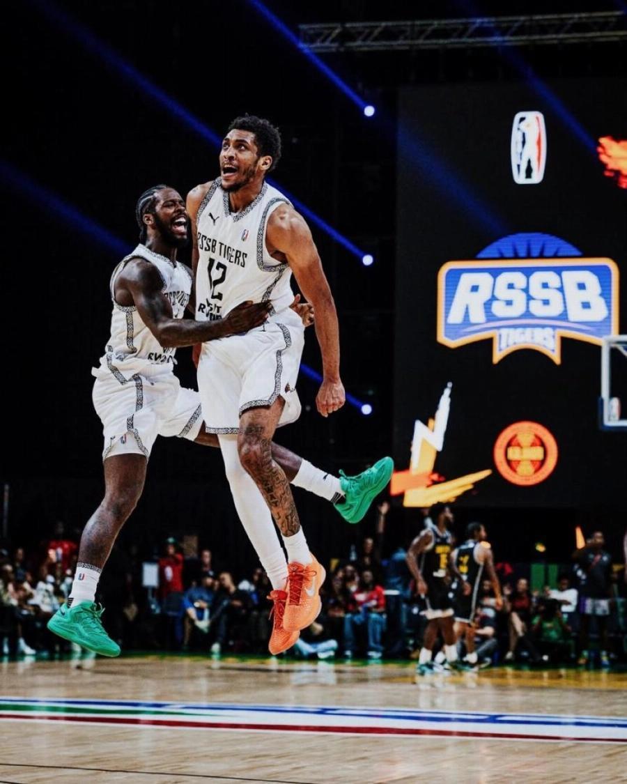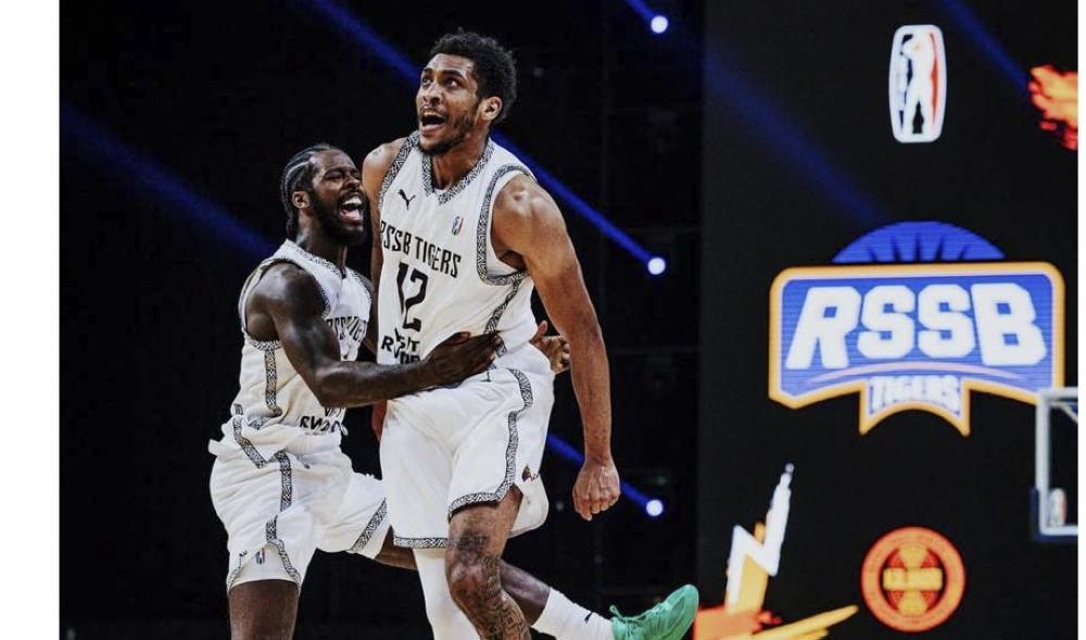 RSSB Tigers’s Antino Jackson celebrates the victory after Rwandan side secured an 82-78 victory over Petro de Luanda on Sunday at the SunBet Arena in Pretoria, South Africa. Courtesy