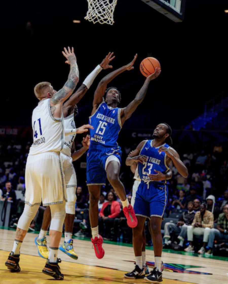 RSSB Tigers’s Antino Jackson in action during the game in which the Rwandan side secured an 82-78 victory over Petro de Luanda on Sunday at the SunBet Arena in Pretoria, South Africa. Courtesy