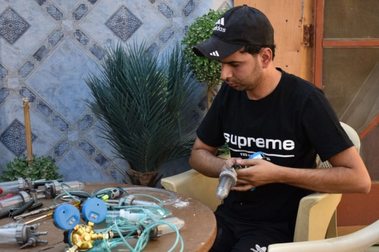 أنابيب معدنية ومفكات وكؤوس بلاستيكية، وأقنعة جاهزة وأجزاء معدنية صغيرة مختلفة الأحجام، هي كل الأجزاء الأساسية التي يحتاجها الحريشاوي لتصنيع أجهزته.
